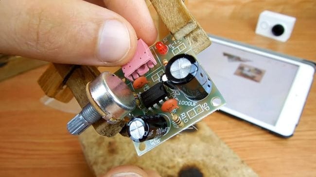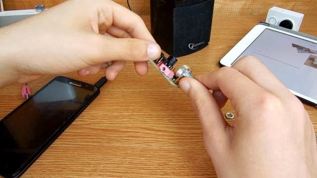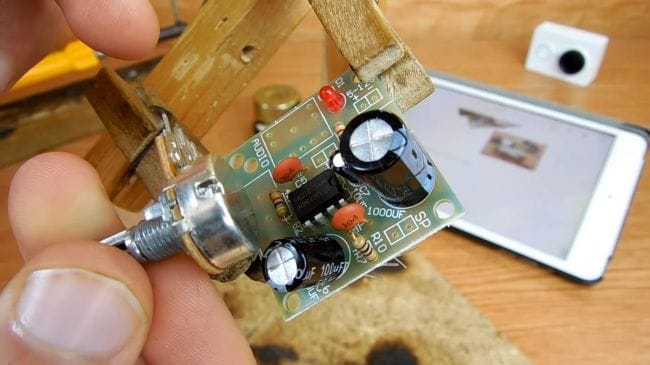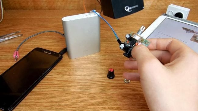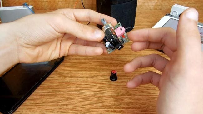 Далее ставим ручку на переменный резистор и начинаем тестировать готовый усилитель.