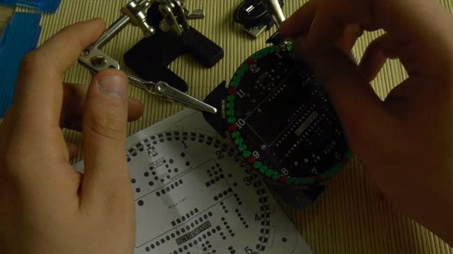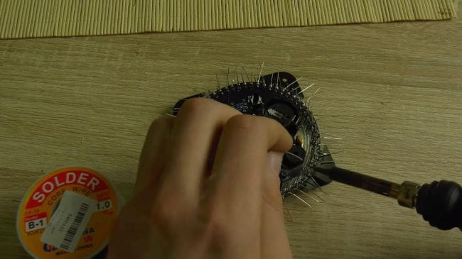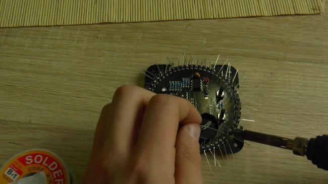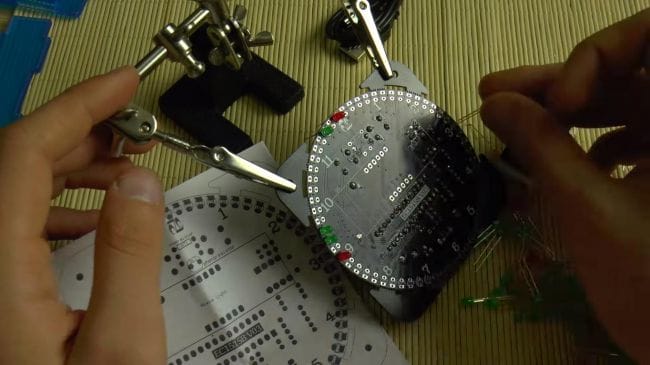 Установив все светодиоды, припаиваем их с обратной стороны платы.