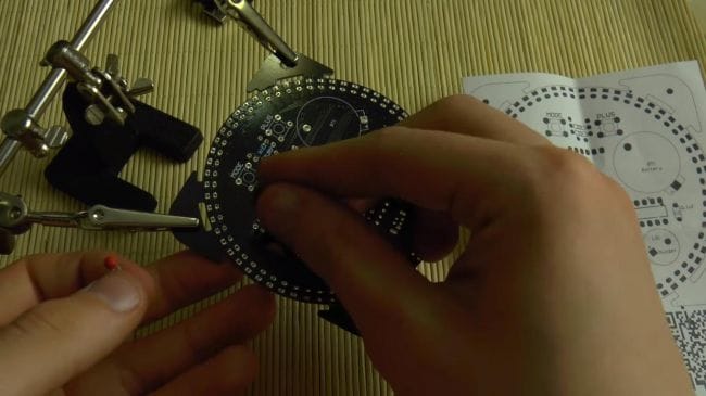 После пайки устанавливаем множество светодиодов, благо установить их правильно не составит большого труда. Внешний контур контактов под светодиоды это и есть плюс, на самом светодиоде это длинный вывод.
