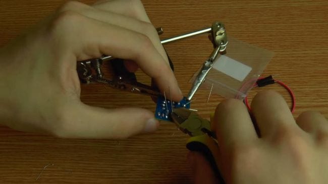 После пайки откусываем при помощи бокорезов остатки выводов. При удалении лишней части ножек радиодеталей бокорезами будьте аккуратны, так как дорожки платы держатся не так сильно и могут удалиться вместе в выводом.