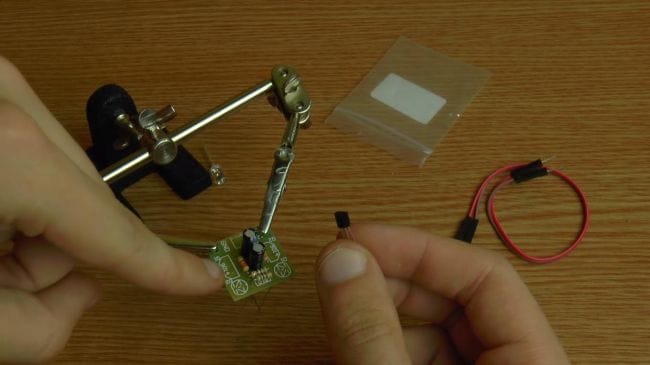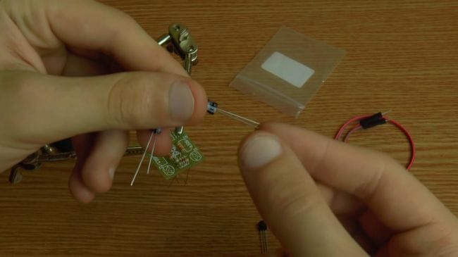 Теперь нужно установить два транзистора с маркировкой 9014, располагаем их согласно рисунку на плате, который повторяет контур полукруглого корпуса.