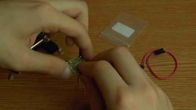 Для того, чтобы все установленные радиодетали не выпали из отверстий платы, нужно подогнуть выводы компонентов.