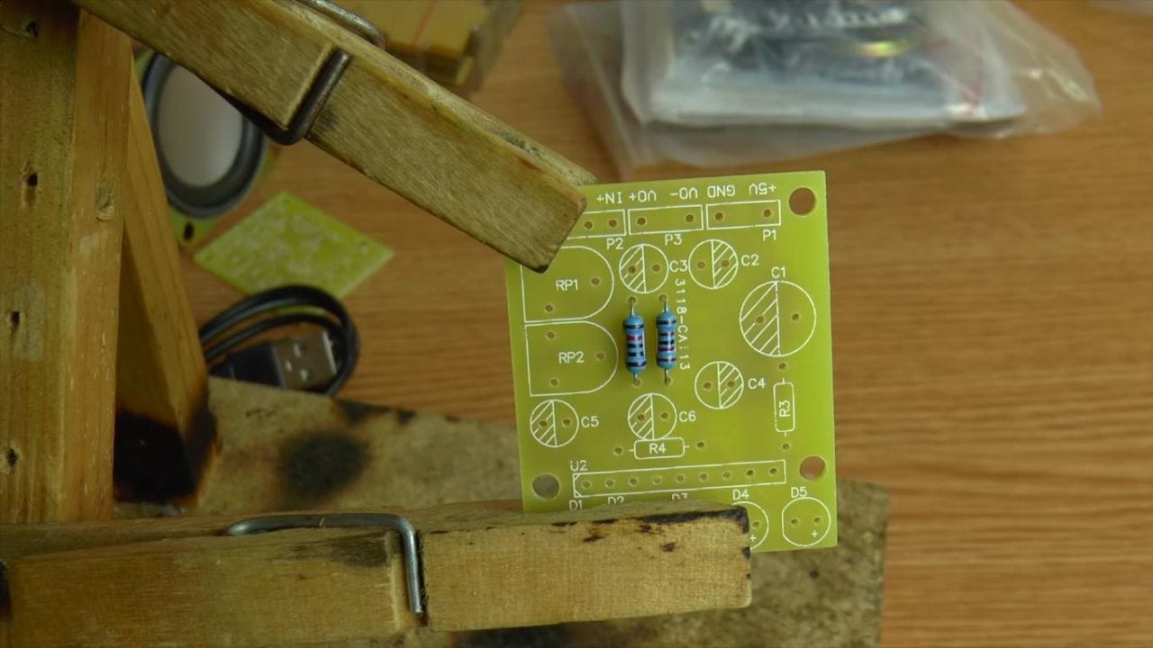Когда все детали установлены на плате, подгинаем ножки с другой стороны платы и переходим к пайке.