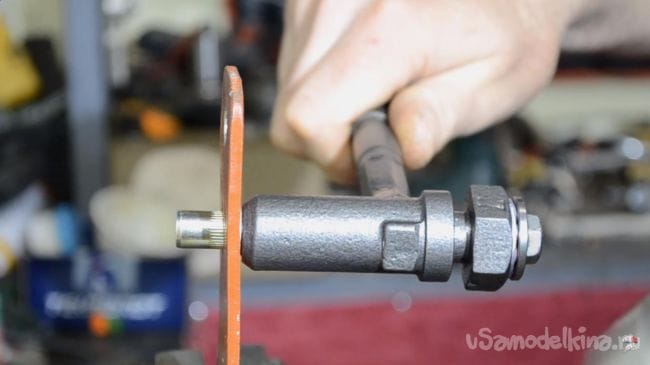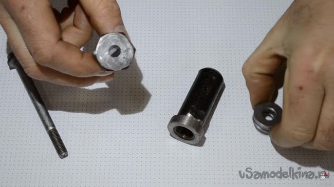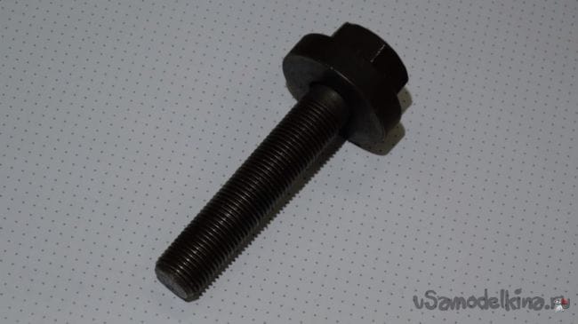 Так как отверстие в упорном подшипнике чуть больше, чем диаметр болта, то нужно сделать проточку на токарном станке.