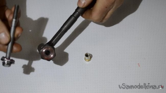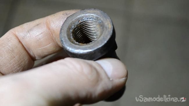 Основой корпуса будет старый рулевой наконечник, который нужно отпилить при помощи углошлифовальной машинки, а точнее отделить его от части с резьбой.