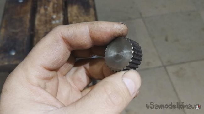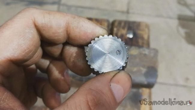 Поэтому данную операцию сделаем при помощи углошлифовальной машинки, в итоге должна получится круглая заготовка толщиной 13 мм с шлицами. В данном случае деталь лучше зажать в слесарные тиски, чтобы она не вылетела при резе, затем постепенно ее прокручивать.