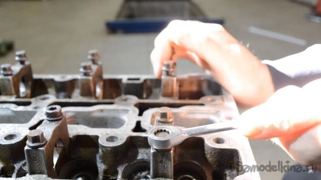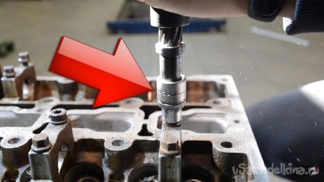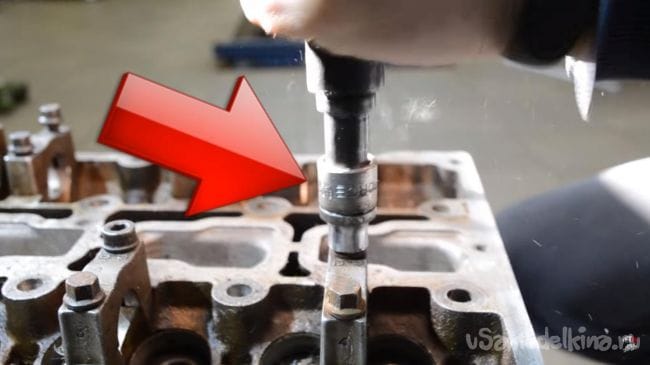 Далее одеваем головку подходящего размера на болт и ударяя молотком по верхнему торцу ударной отвертки, постепенно откручиваем болт, аналогично откручиваем второй.