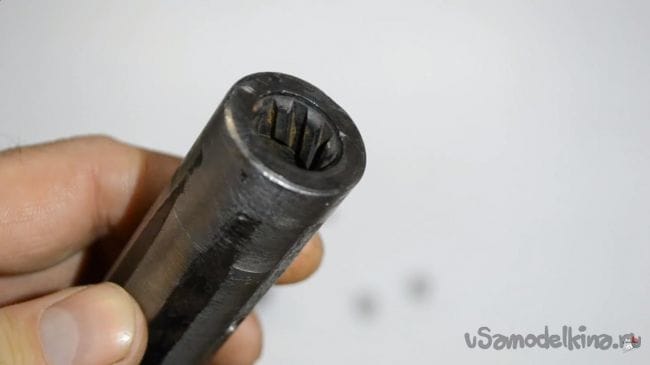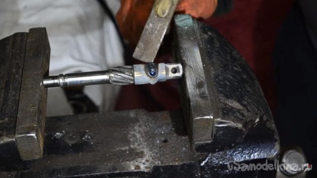 Для того, чтобы на данную отвертку можно было устанавливать различные головки, нужно отрезать четырехгранную часть от воротка при помощи УШМ.