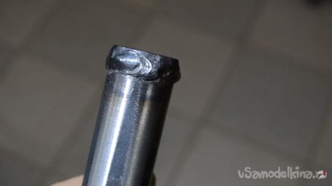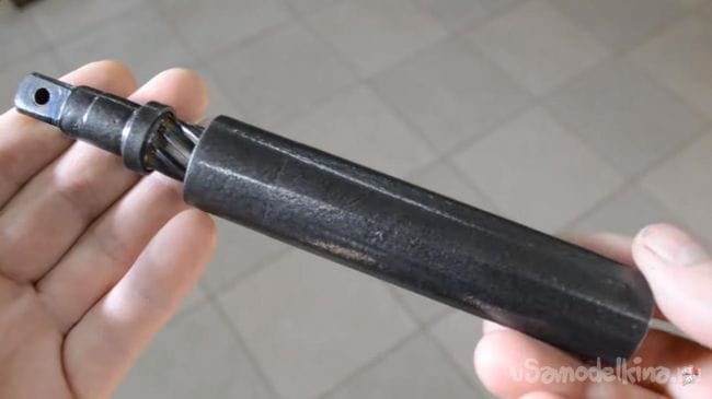 Если у вас нет токарного станка, то основание можно сделать из трубы подходящего диаметра, желательно с толщиной стенки не менее 2 мм. Так будет выглядеть инструмент в сборе.