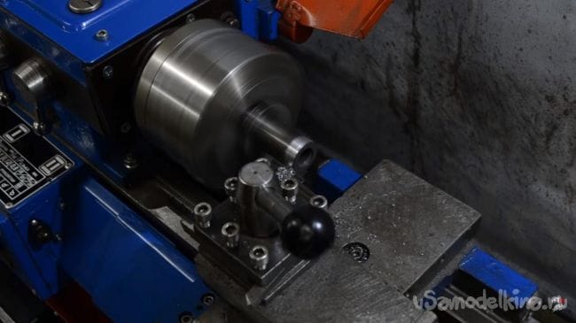 Даем детали немного остыть, затем зажимаем ее в трехкулачковый патрон токарного станка и убираем следы от сварки при помощи проходного резца.
