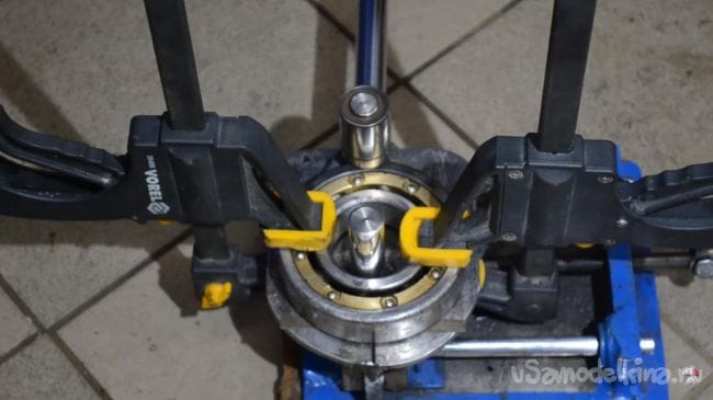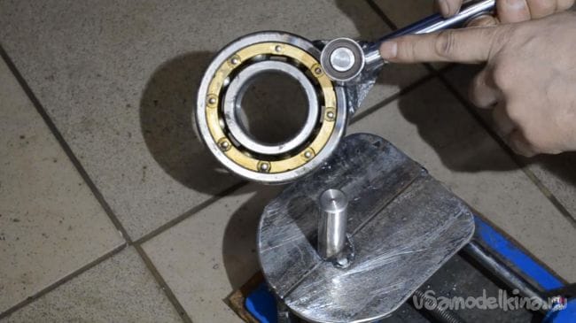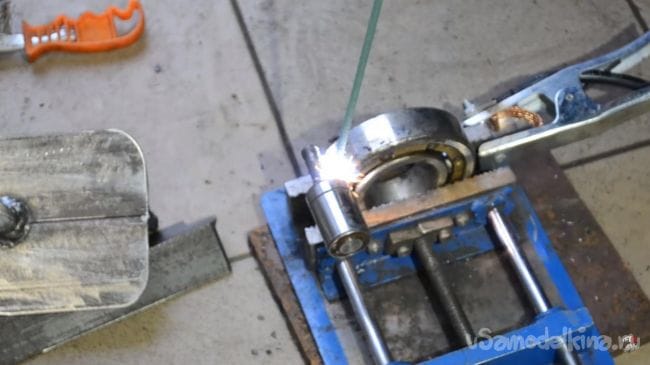 Далее привариваем подшипник к внешней обойме подшипника с номером 6310, закрепленного в тисках.