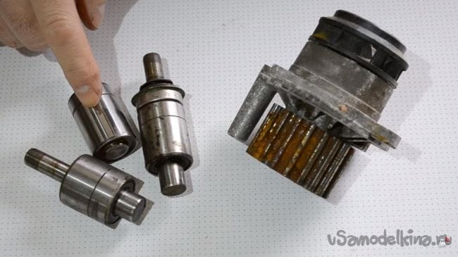 Сделать это можно двумя способами, распилить корпус помпы углошлифовальной машинкой, после чего получить полный доступ или же извлечь его на прессе. Выбираем любой понравившийся способ, если корпус не жалко, то подойдет и первый вариант.