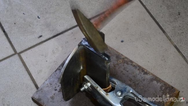 Зажимаем инструмент в тисках.