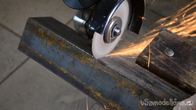 Теперь нужно немного доработать отпиленные части уголков при помощи углошлифовальной машинки, в конце обработки деталь должна выглядеть так.