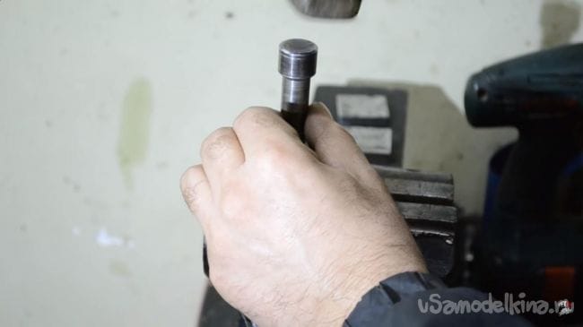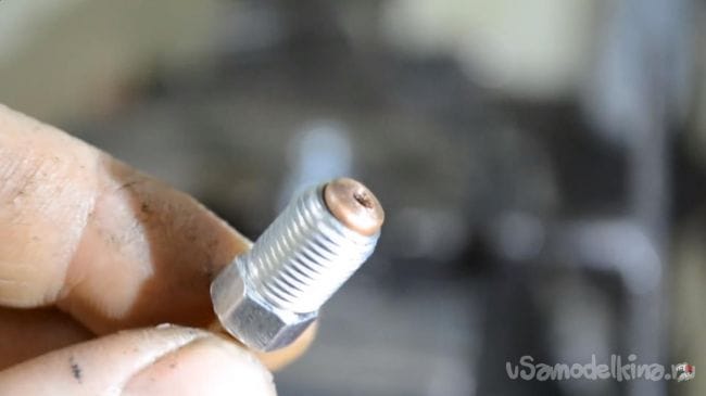 Для вальцевания вытачиваем небольшую выемку под шляпку. В итоге болт должен выглядеть так.