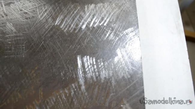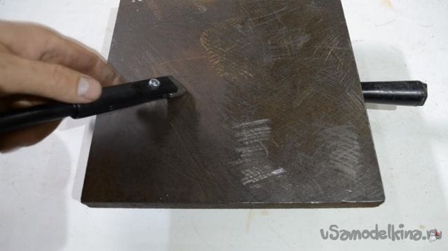 Пришло время испытать инструмент в работе. Для этого берем шабер и начинаем шабрить поверхность металлической плиты, немного надавливая на него.