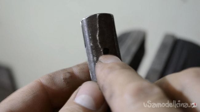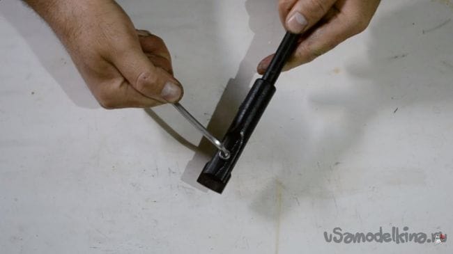 Для фиксирования шаберной пластины, которую также нужно будет сделать, необходимо отрезать лишнюю часть от рулевого наконечника при помощи УШМ.