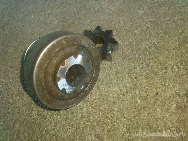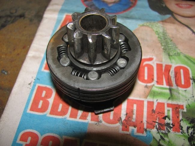 Устройство его ничем не отличалось от устройства почти всех "бендиксов" - внутренняя обойма жёстко связана с шестернёй, которая входит в зацепление с венцом, наружная - с корпусом, имеющим с другой стороны выступающую ступицу с наклонными шлицами, посредством которых устройство совершает поступательное движение при входе/выходе в это зацепление...