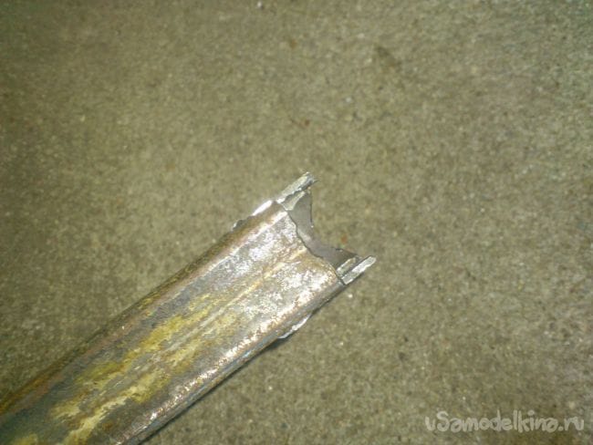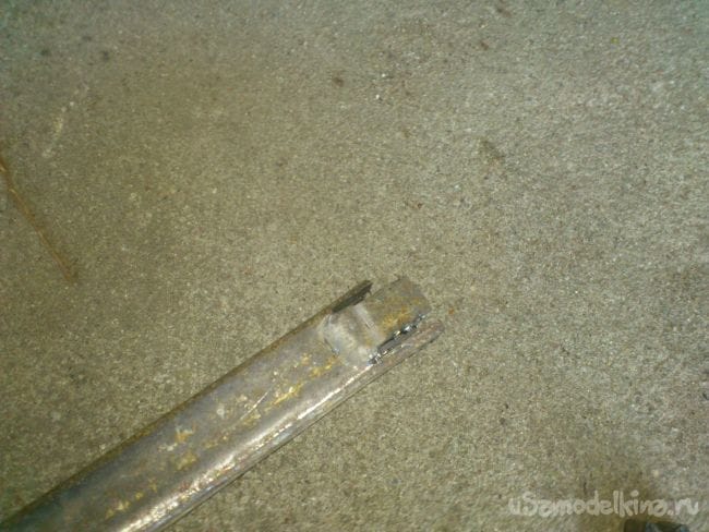 На конце трубки я сделал в противоположенных гранях по два пропила так, чтобы впоследствии эти грани разогнуть, а в двух других сделать полукруглые выемки: