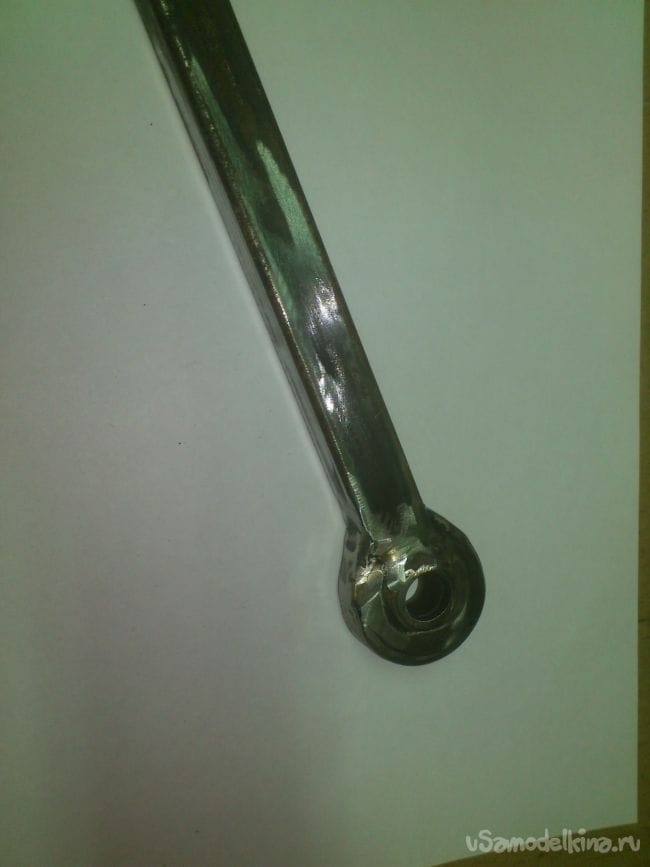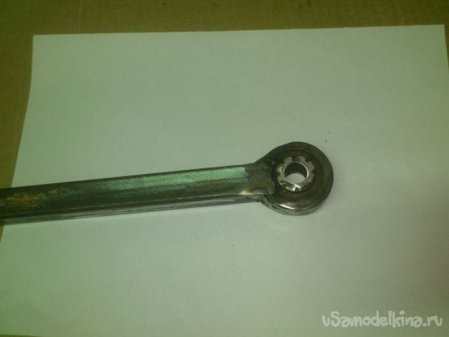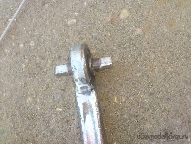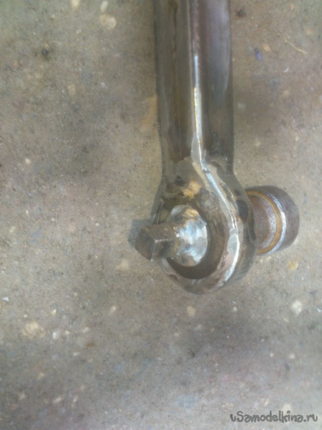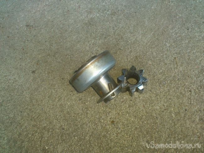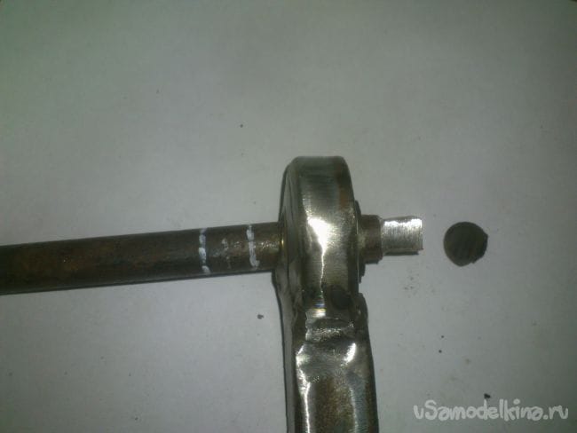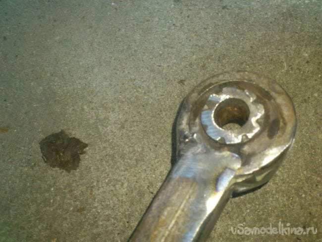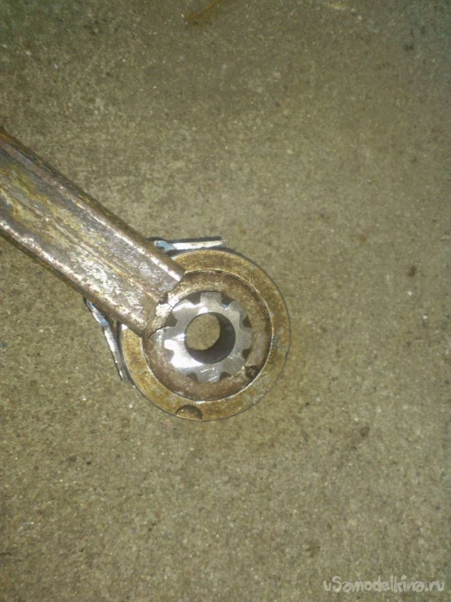 Это необходимо для того, чтобы потом плотно вложить "бендикс" в получившуюся рукоятку и приварить. При этом следует обратить внимание на то, чтобы со стороны ступицы рукоятка прилегала как можно плотнее, а вот со стороны шестерни не доходила до неё:
