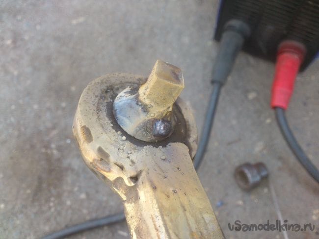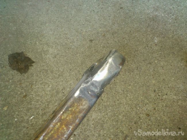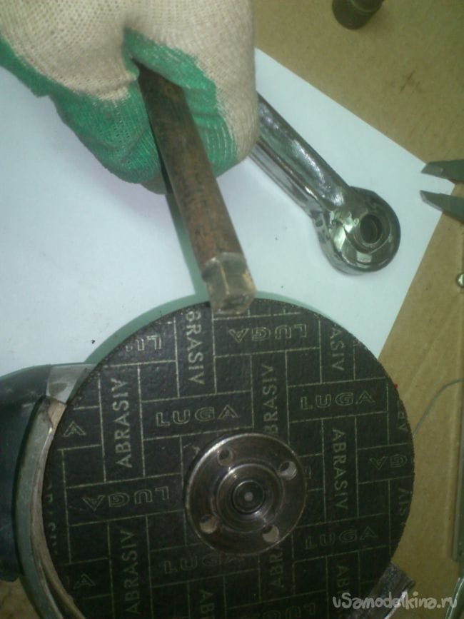 Потом, работая "болгаркой" с зачистным кругом, придал концу прутка на длину 10 миллиметров квадратную форму со стороной, равной тоже, примерно 10 мм.