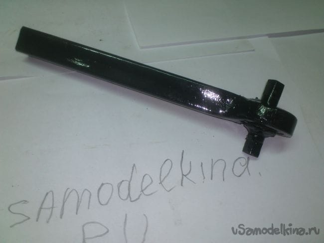 После этого я покрасил изделие. Использовал начатый баллончик с чёрной эмалью, который попался под руку: