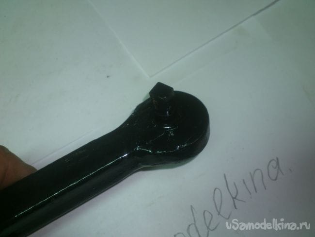 Ну вот, моя "трещотка" почти готова! Осталась окончательная "доводка". В торец рукоятки я забил пластиковую заглушку для профильных труб подходящего размера. (Я часто использую в самоделках трубы квадратного сечения, поэтому в запасе есть много различных заглушек. Ведь стоят они совсем копейки, а "законченный вид" изделию придают очень даже хорошо: