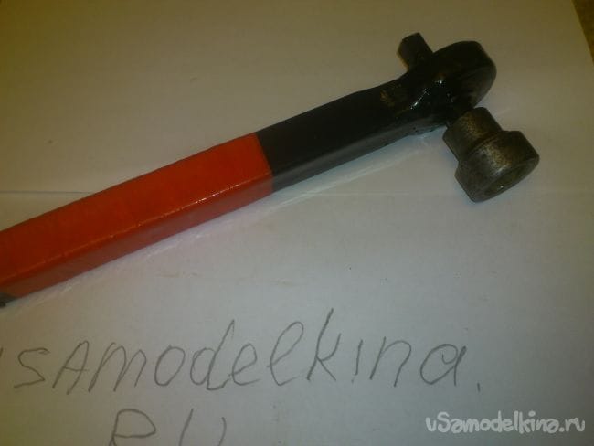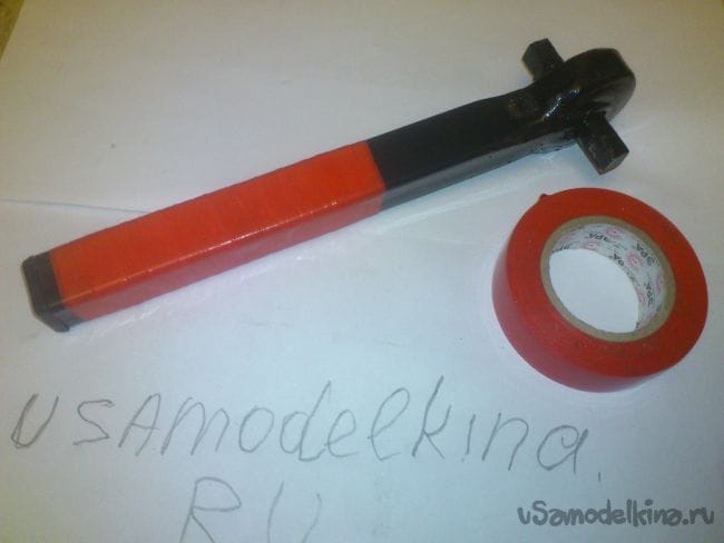 И напоследок, решил сделать инструмент более ярким. От меня инструмент постоянно "прячется" (а, тем более, чёрный))), поэтому я стараюсь добавить в него какой-либо яркий цветной элемент. Самым простым способом является обматывание рукоятки жёлтой, или красной изоляционной лентой...