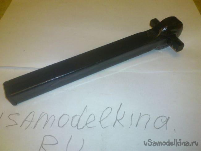 Далее я приступил к изготовлению рукоятки. Для этого я взял отрезок профильной трубки со стороной 20 мм, и стенкой 1,5 мм. Это было обусловлено тем, что толщина обоймы "бендикса" оказалась 17 мм - как раз внутренний размер трубки.
