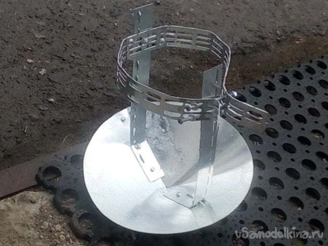 Добрый день! Решил изготовить козырек для вентиляции гаража. Готовое изделие в нашем магазине «Самоделкин» стоит 250 рублей. Однако... На мусорку кто то выбросил некий девайс. Из которого я ножницами по металлу вырезал нужные детали. Скрепил их с помощью заклепочника. Впрочем все видно на фотографиях. Рекомендую к повторению!