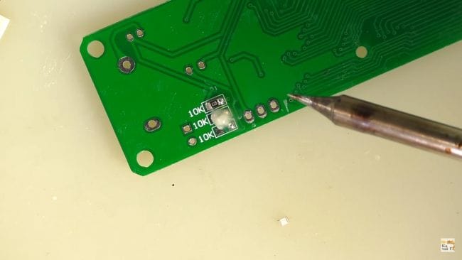 С другой стороны платы припаиваем три резистора на 10 кОм.