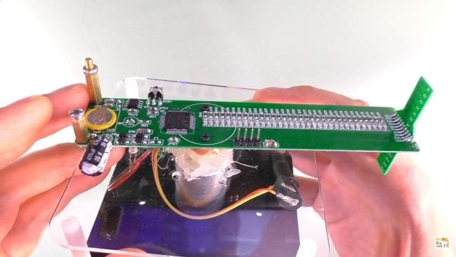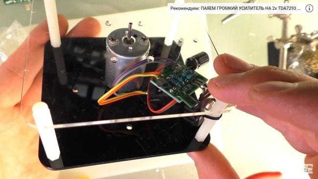 Большая печатная плата будет приводиться в движение при помощи электромоторчика, к которому есть специальный корпус из оргстекла для большей устойчивости.