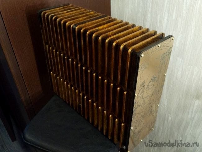 По размерам корпус получился 33х27х11см. В толщину корпус сделал побольше, потом хочу поставить еще один кулер или полностью заменить родную систему охлаждения. Сам корпус вырезал из фанеры толщиной 6мм, а декоративные элементы из фанеры 4мм. На все детали ушло два листа фанеры примерно 50х50см, а общая длина реза составила почти 42 метра.