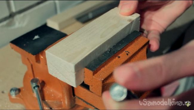 Зажимать деревянные заготовки в тисках лучше через какие-либо деревянные проставки, чтобы избежать следов от губок тисков.