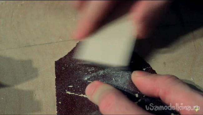 Отпиленный брусок слегка облагораживаем при помощи наждачной бумаги, тем самым выровняв поверхности и сгладив острые углы с заусенцами.