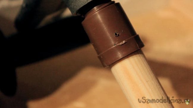 Скругляем внутренние края получившегося отверстия при помощи углошлифовальной машинки, это поможет предотвратить чрезмерную фиксацию швабры, дабы не повредить ее черенок.