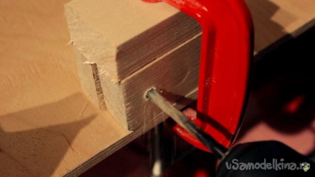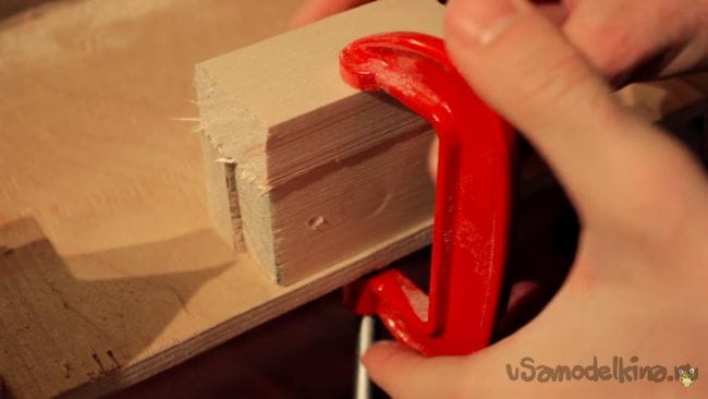 Фиксируем деревянные заготовки на верстаке с помощью струбцины.