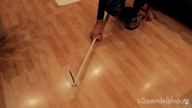 Разбираем швабру, убираем пластиковый наконечник сверху и соединительную муфту снизу, от швабры понадобится только черенок.
