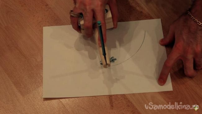 В данной конструкции шуруп выступает в роли иголки циркуля, а карандаш наносит разметку.