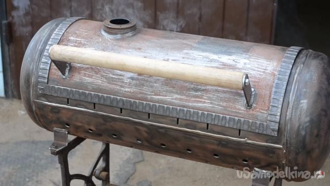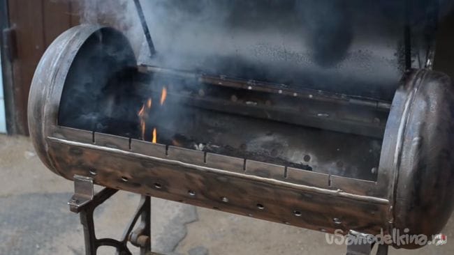 В итоге получился такой симпатичный мангал сделанный своими руками. На данном мангале можно готовить шашлык, рыбу и все, что душе угодно, а дружная компания оценит вашу самоделку по достоинству и скажет спасибо.