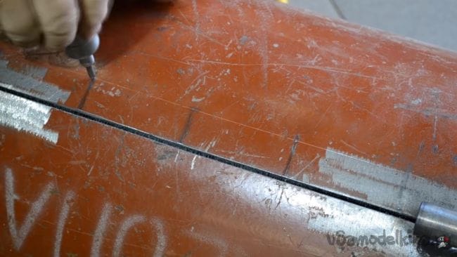 Далее с помощью полуавтоматического керна делаем углубления по меткам и сверлим отверстия электродрель с установленным сверлом по металлу на 6 мм, а затем на 12 мм. В процессе сверления добавляем техническом масло на режущую кромку, так режущий инструмент дольше прослужит и не заклинит. При работе с электродрелью будьте осторожны, надевайте защитные очки и перчатки.