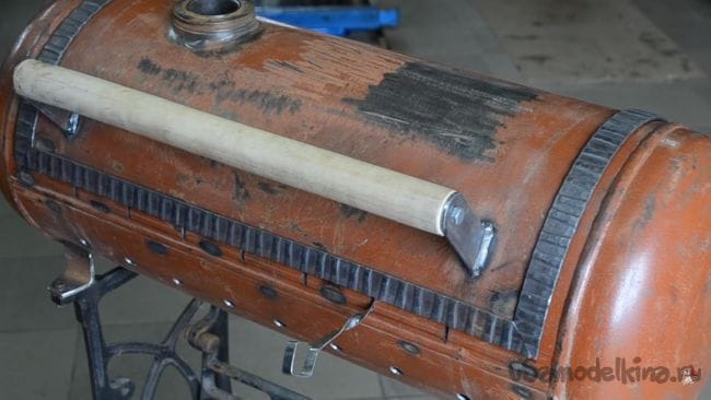 Мангал практически готов, осталось сделать шинку, ручку, но сначала устанавливаем баллон на основание.