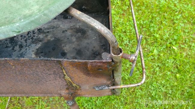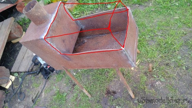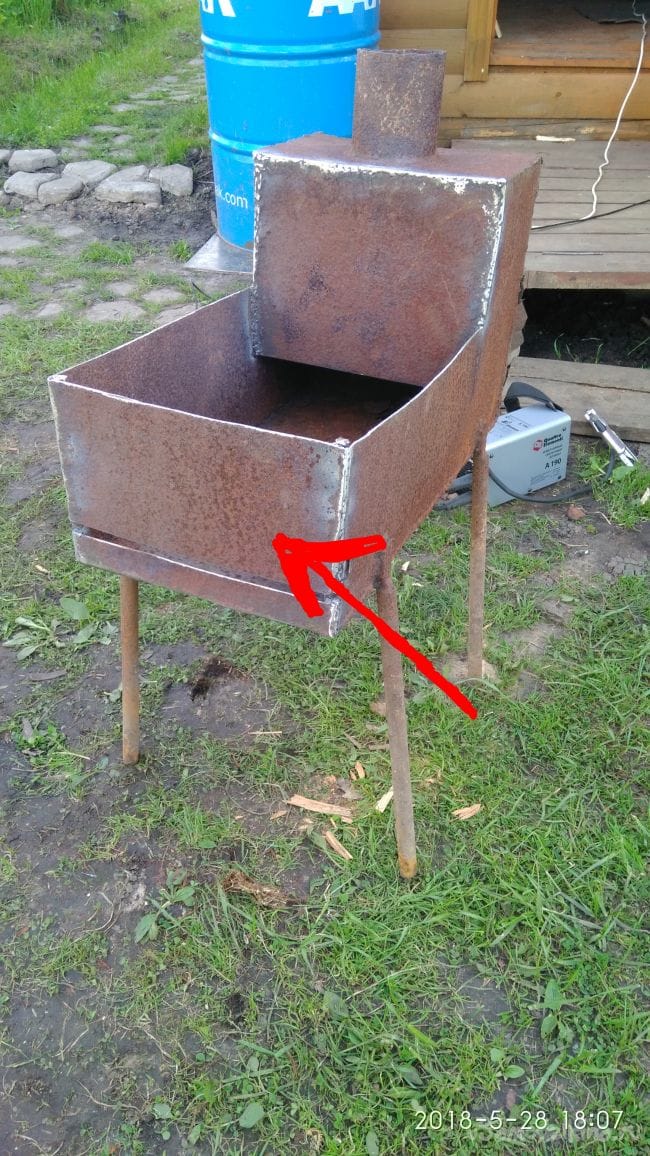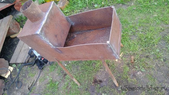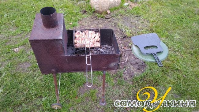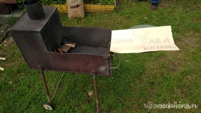 На досуге смастерил себе на даче передвижной мангал из старой печки.