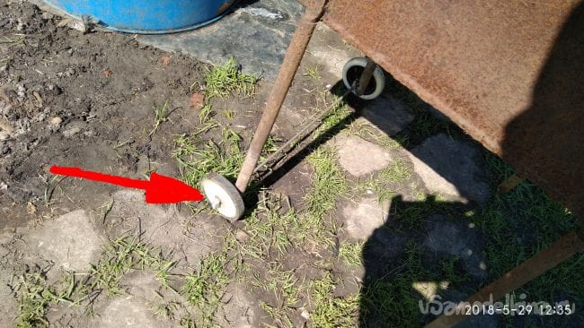 Далее привариваю к задним ножкам печки колёсики от старой детской коляски.