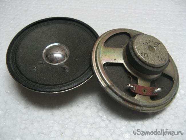 Динамики подходящего диаметра. Я взял от старого магнитофона, каждый по одному Ватту. Большой мощности нет смысла. Да и включать на всю мощность включать не собираюсь.