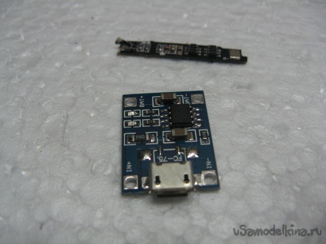 Заряжать аккумулятор буду через контроллер заряда из Китая. У меня он без платы защиты, поэтому применю плату от аккумулятора мобильного телефона. У контроллера на борту микро USB, можно заряжать любой зарядкой с данным разъемом.