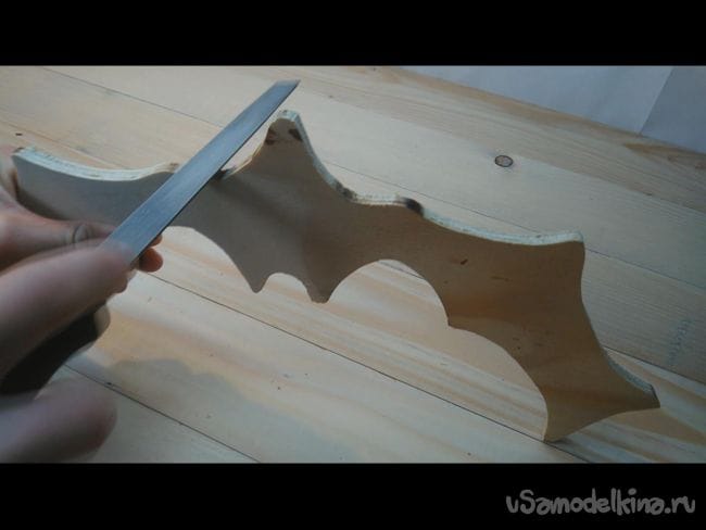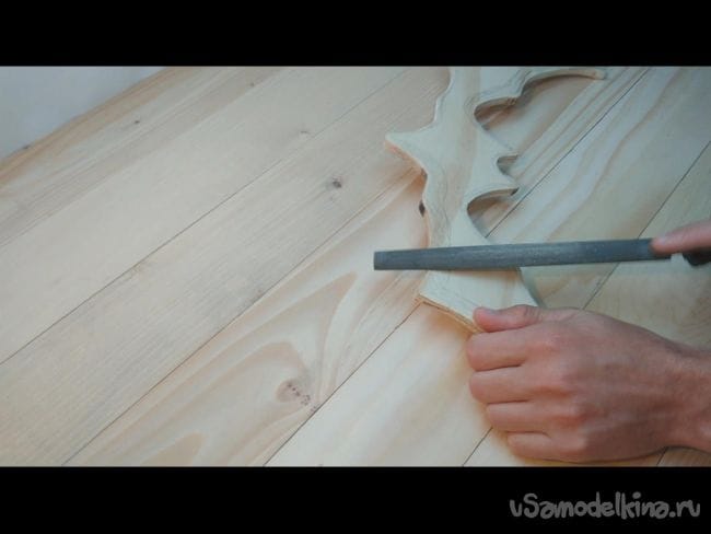 Шаг 3: Края которые не допилили закругляем напильником. Немного обрабатываем торцы бумеранга наждачной бумагой.