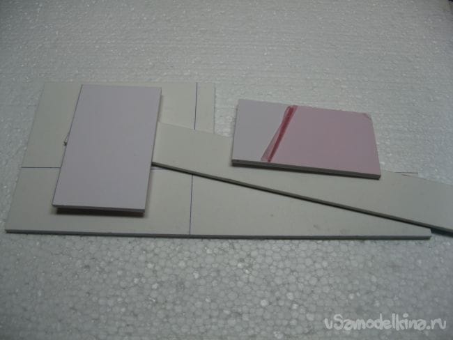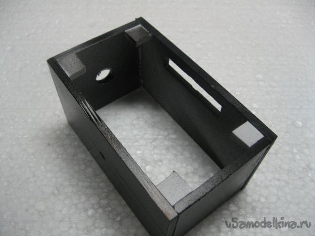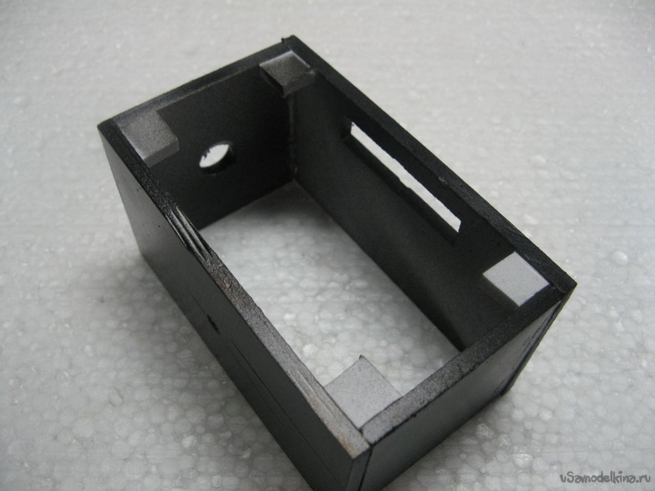 Из пластика вырезаем пластинки заготовки нужного нам размера. Склеиваем в виде буквы "О". Все склеивается на супер клей. Так же вырезаем две пластины, размером для закрытия корпуса. Пластины нужны для задней и передней панели.