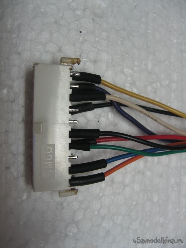 Разъем для подключения блока питания я выпаял из старой материнки. Можно применить на 24 контакта, я применил на 20.