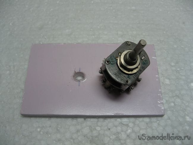 В заготовке для передней панели, сверю отверстие под галетный переключатель. Так же галетник имеет ключ для установки. Сверлю отверстие и под него. Позже его будет видно.